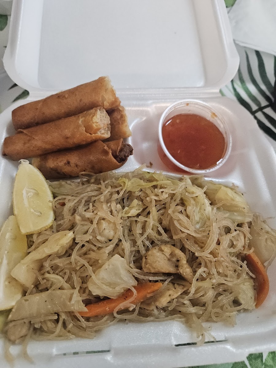 On my first visit, I ordered chicken adobo and pancit. Adobo, often described by culinary researchers from organizations like the Smithsonian as one of the most iconic Filipino dishes, is all about balance-vinegar, soy sauce, garlic, and bay leaf working together. Here, the chicken was tender and deeply flavored, not overly salty, and clearly simmered long enough to let the sauce do its job. The pancit noodles were light, with crisp vegetables and just enough seasoning to make them addictive without feeling heavy.